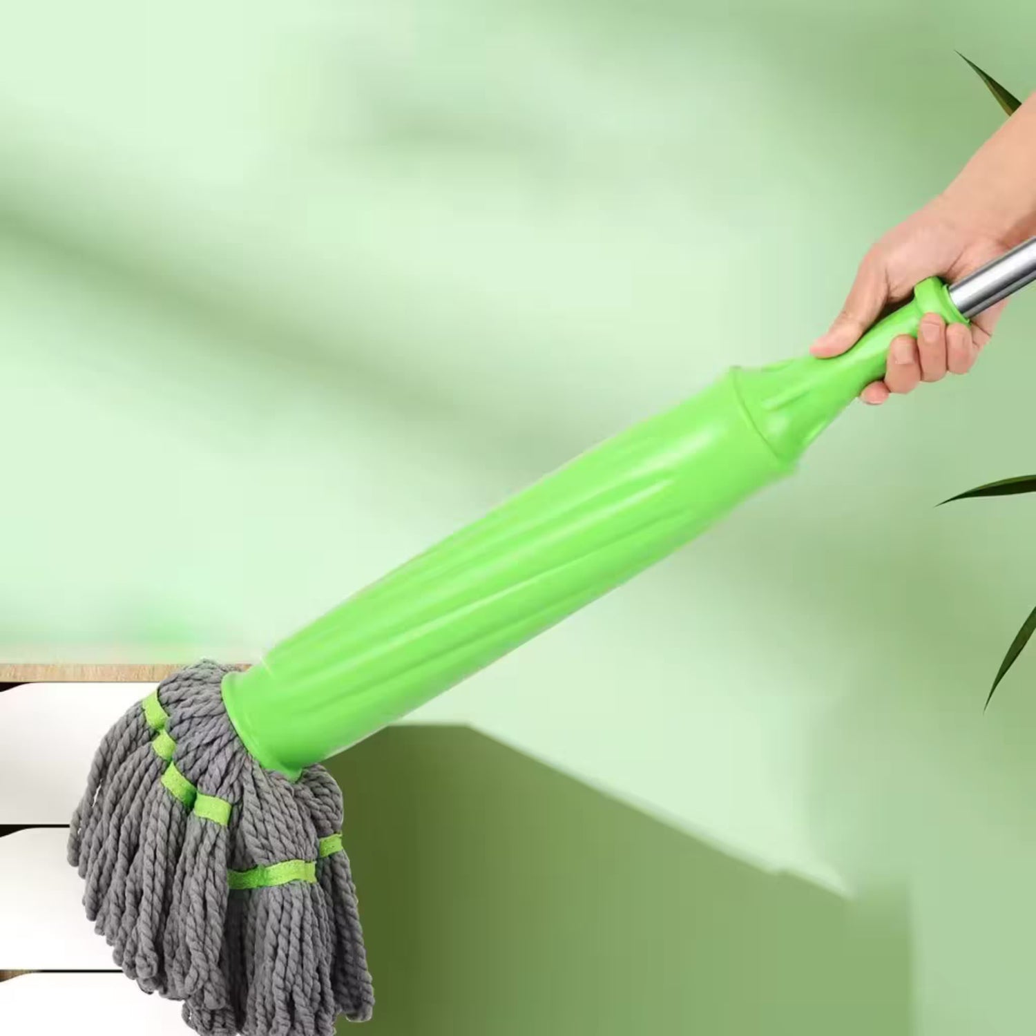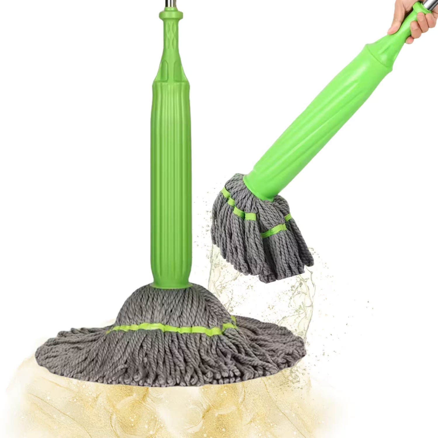 CleaningMop™ combina el diseño ergonómico del bambú con un sistema de escurrido automático que evita el contacto con el agua sucia. Su cabezal giratorio de 360° y microfibra de alta absorción eliminan polvo, grasa y líquidos en segundos.